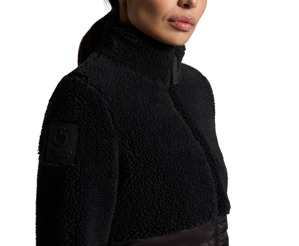 Il gilet di Cavalleria Toscana unisce il calore avvolgente del pile Teddy Bear con dettagli tecnici di nylon sulle spalle e sul retro, per una maggiore protezione e un look contemporaneo.