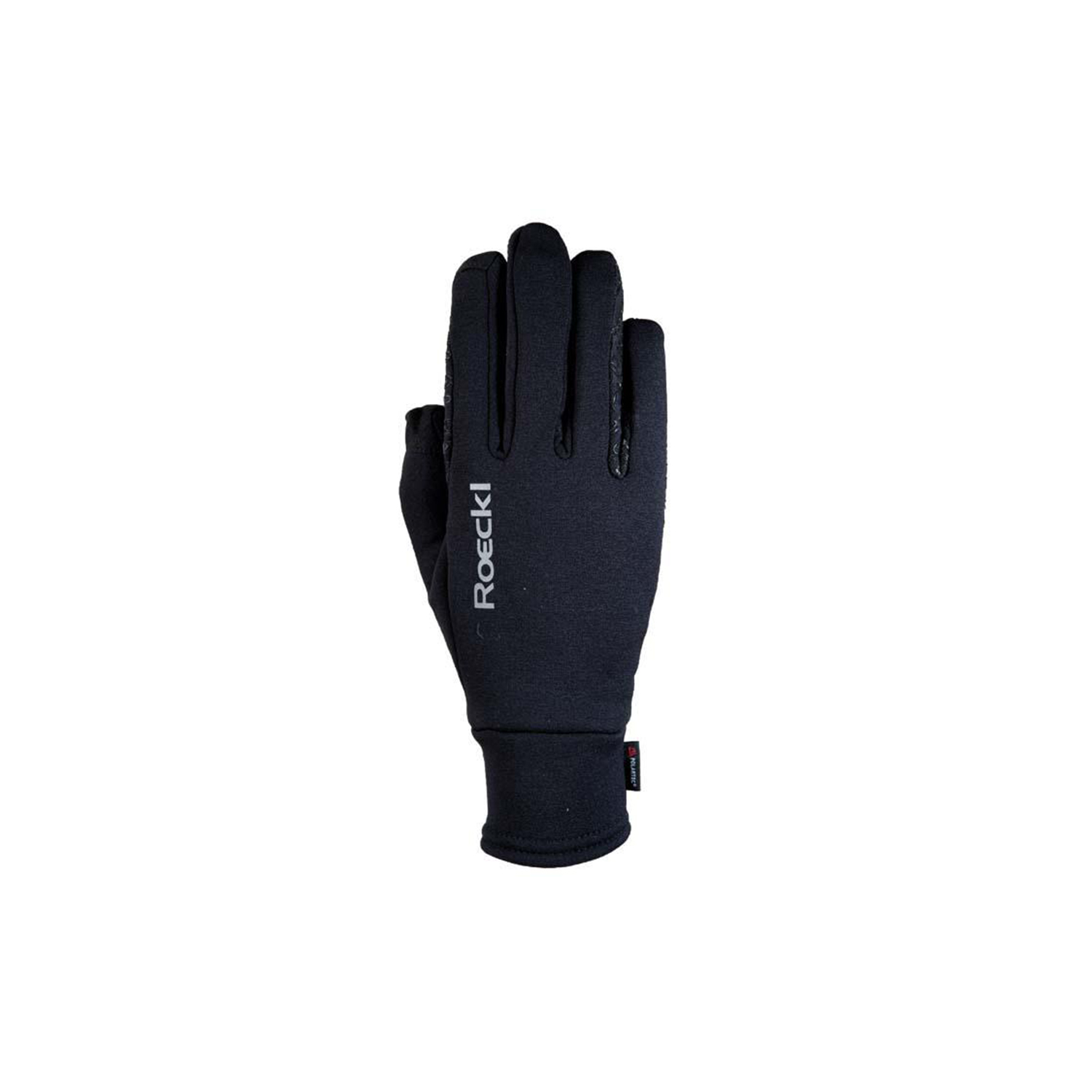 Il palmo con innumerevoli piccoli loghi ROECKL siliconati garantisce una perfetta presa sulle redini. La zona tra l'anulare e il mignolo, ovvero la parte del guanto che entra in contatto con le redini, presenta un ulteriore rinforzo siliconato. L'ausilio per l'inserimento facilita l'inserimento dei guanti.
