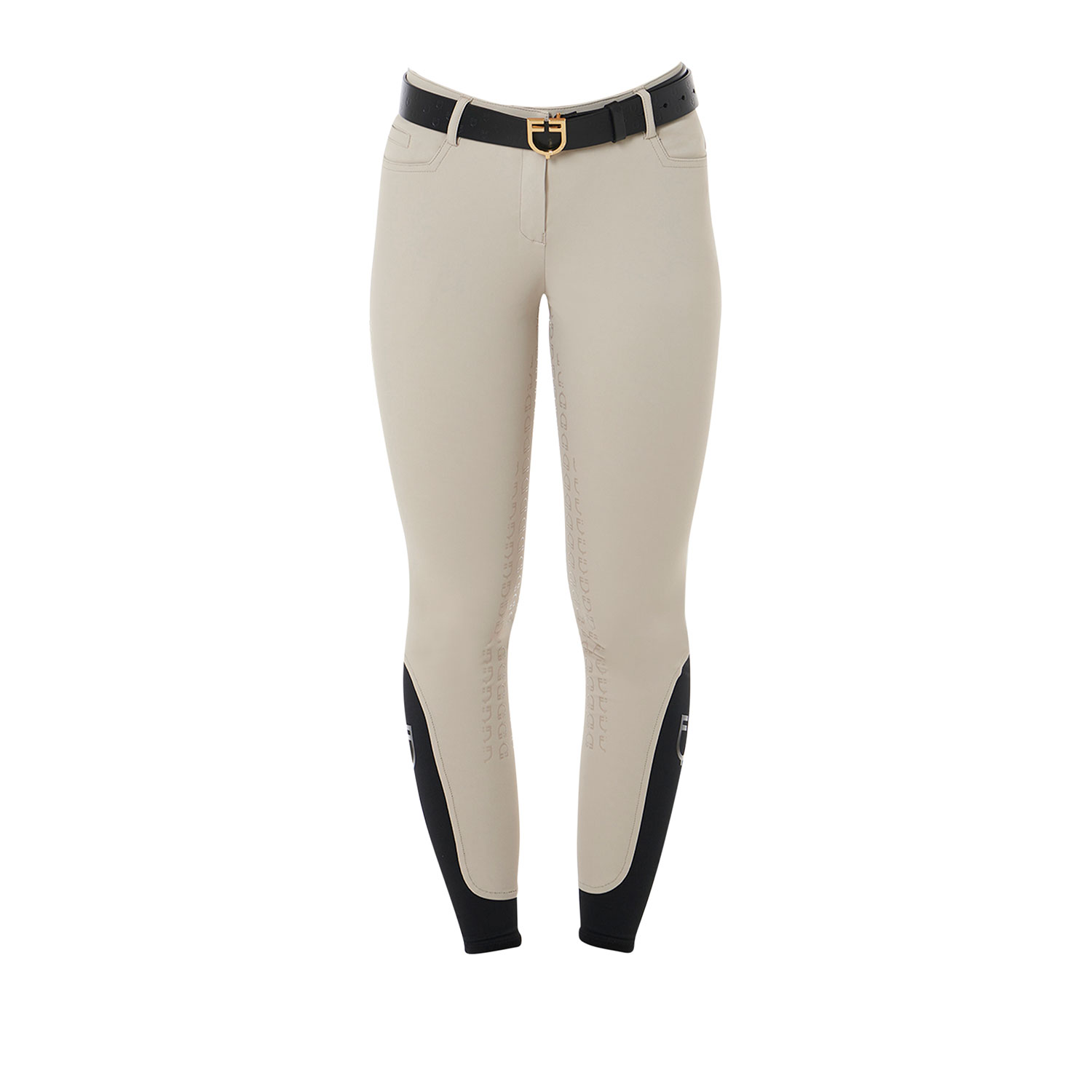 Le tasche anteriori e posteriori sono pensate per la massima praticità, mentre il grip in silicone, decorato con il logo Equestro, assicura stabilità e aderenza in sella, permettendo al contempo una libertà di movimento senza pari.
