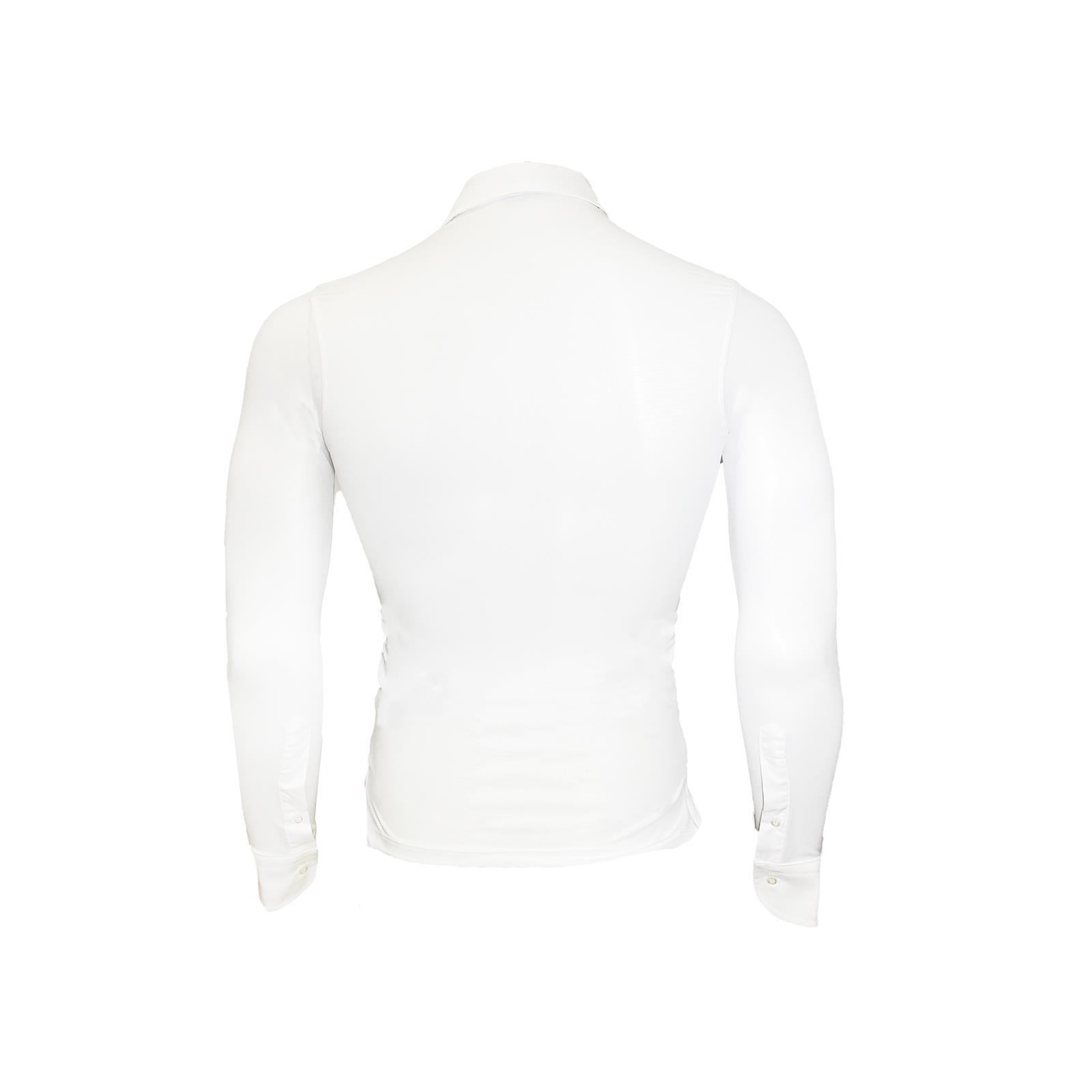 Modello Extra Slim Fit di colore bianco, con colletto ricamato con corona Equitatus 1991.