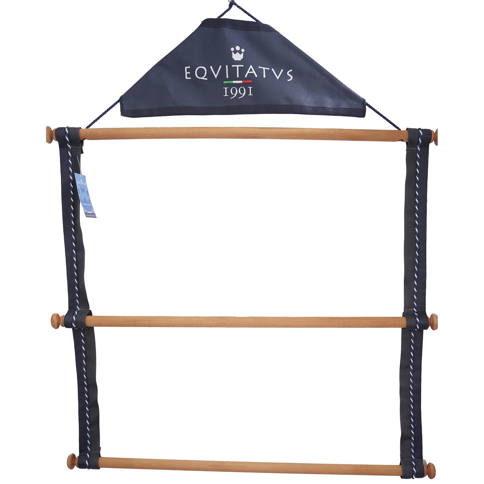 Utile accessorio per stalla e concorsi, ideale per appendere e mantenere in ordine coperte o sottosella, dotato di 3 aste in legno.