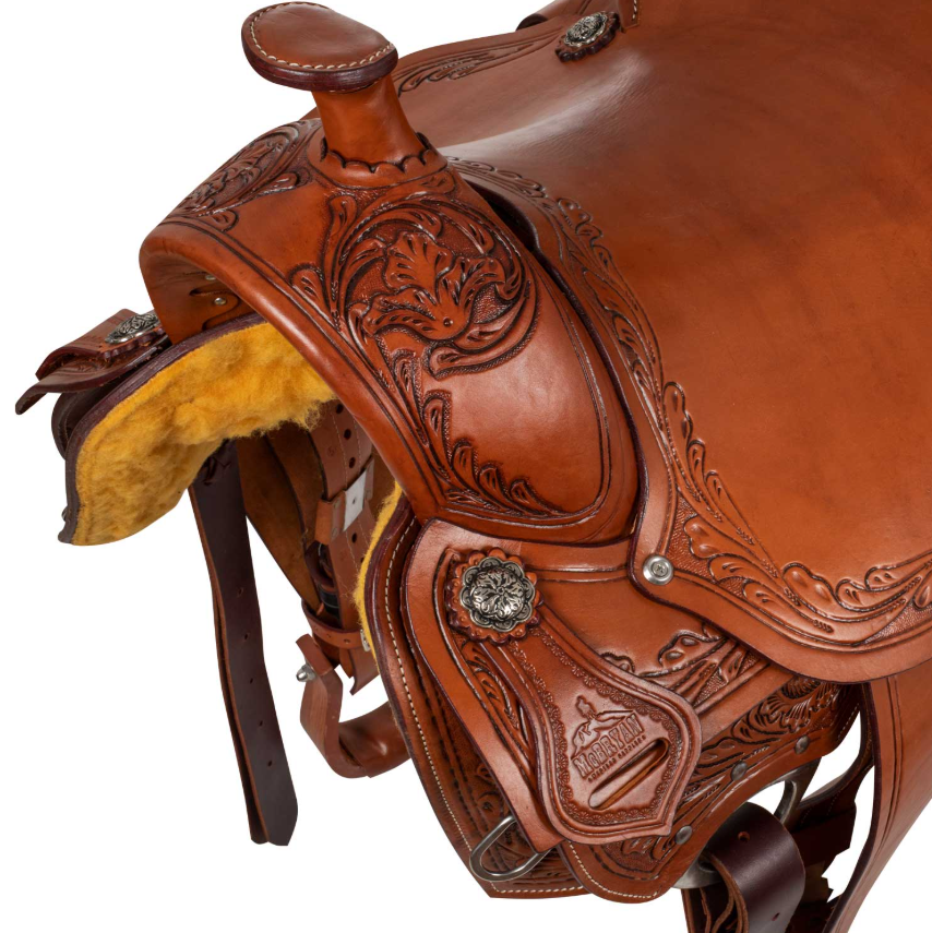 Sella da lavoro Wpro in morbido cuoio con lavorazione floreale.