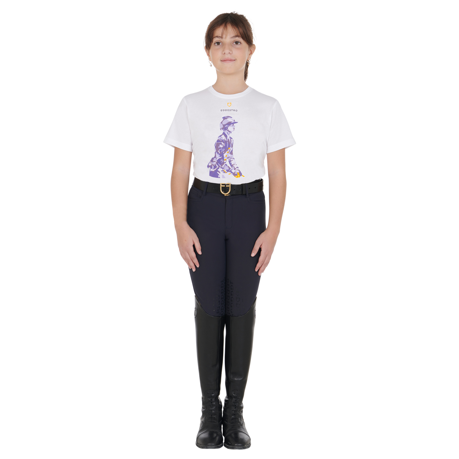 Maglietta slim fit per bambini, realizzata in morbido cotone con maniche corte. Ideale per giovani cavalieri per la sua comodità, adatta a ogni occasione e favorisce la traspirazione e l'asciugatura del sudore. Con decorazione sul petto.