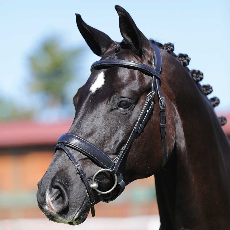 Il sovracapo è classico e anatomico, studiato per alleviare la pressione sulla zona cranica del cavallo, assicurando una vestibilità comoda e senza restrizioni.